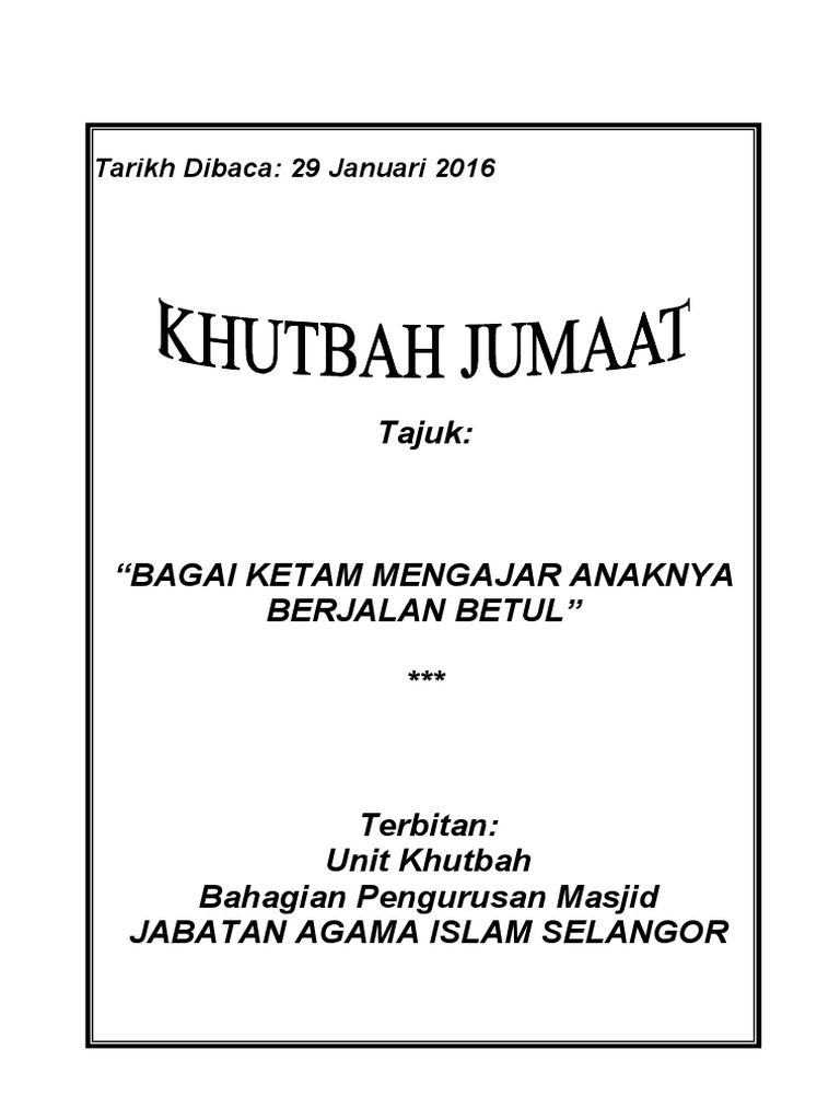 2016 29 ﺔﻌﲨ ﺔﺒﻄﺧ - 2 -. Kamus menyuruh adik-adik kamu bersembahyang tetapi kamu sendiri tidak sembahyang. Jeng jeng jeng jeng bagaikan ketam mengajar anaknya berjalan lurus.